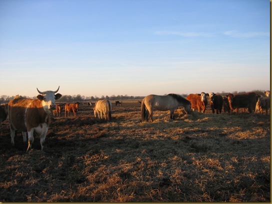 Aber die unten stehend en Fotos zeigen, dass sich die drei inmitten der vielen Rinder und Esel wunderbar durchsetzen können und immer ans leckere Heu ran können. Endlich Fressen satt 24 Stunden lang…